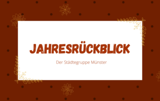 Was hat eure Städtegruppe in diesem Jahr veranstaltet? Was war euer Highlight 2021? Das erste halbe Jahr war coronabedingt sehr ruhig. In der zweiten Jahreshälfte hatten wir dann zwei sehr schöne Stammtische. Ende September trafen wir uns das erste Mal seit einem Jahr wieder in Präsenz und hatten einen gemütlichen und unterhaltsamen Abend, bei sommerlichen Temperaturen, im Biergarten "Klamm & Heinrich". Als Team "Wissen macht Aa!" haben wir Ende Oktober einen lustigen Abend beim Pubquiz "Wer wird Pensionär?" in der