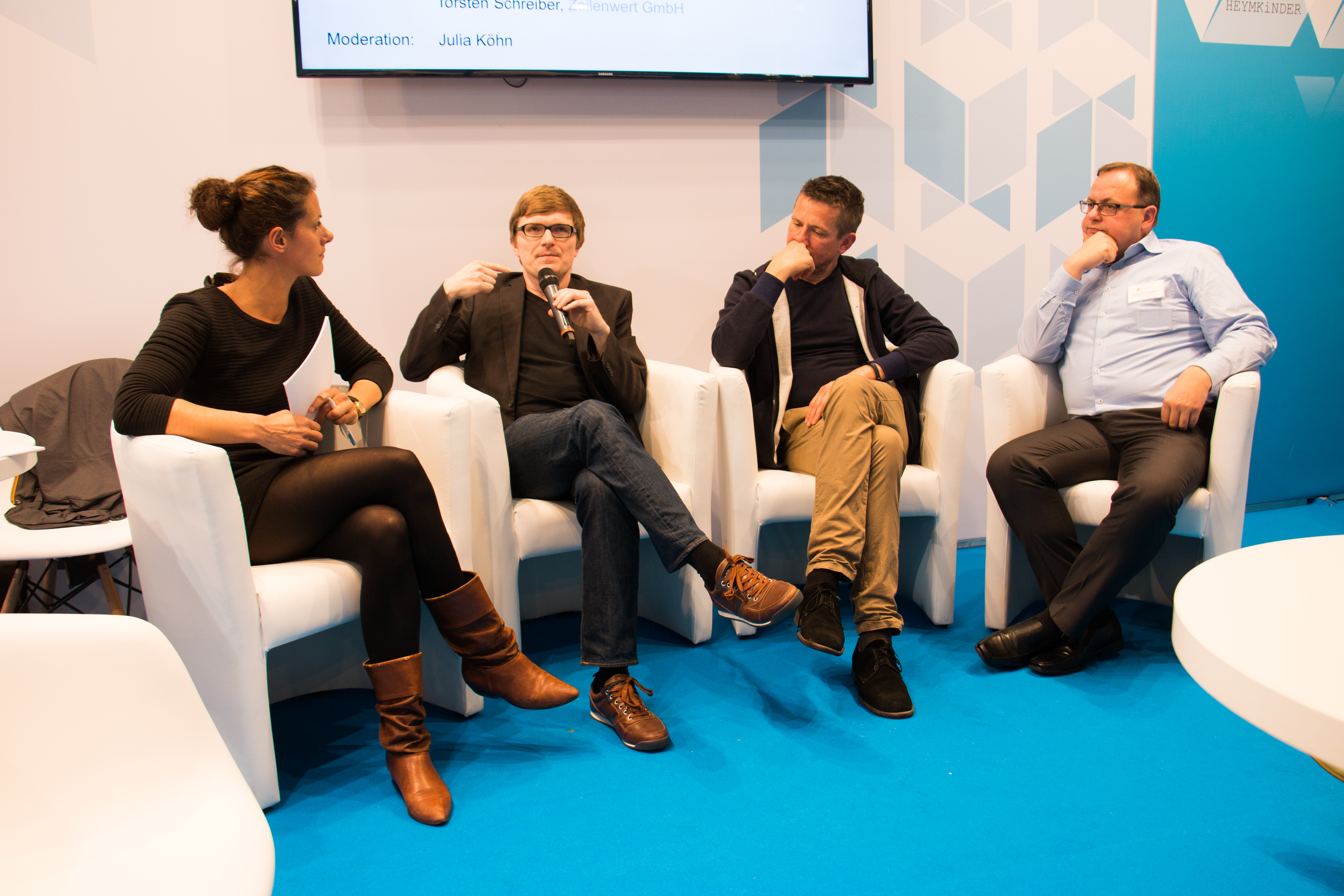 Julia Köhn vom Kompetenzzentrum Kultur- und Kreativwirtschaft des Bundes lud am Messedonnerstag Interessierte dazu ein, die Podiumsdiskussion zwischen Georg Dahm von Fail Better Media GmbH, Christian Böllert von detektor.fm und Torsten Schreiber von der Zeilenwert GmbH mit zu verfolgen. Dabei ging es um das Thema „Digitalisierung aus einem kreativwirtschaftlichen Blickwinkel“. Das Problem dabei sei, dass Kreative die Digitalisierung oft als Bedrohung ansähen und klassische Printredaktionen aufgrund der Digitalisierung eingestampft worden wären. Sei es dabei nicht vielmehr so, dass viel Neues entstehe und einfach das Alte ablöse, genauso wie einst es auch bei den analogen Vorfahren gewesen sei? Mit dieser Fragestellung wandte sich Köhn an ihre drei Gäste aus unterschiedlichsten Bereichen wie Radio, Verlag und Wissenschaft.