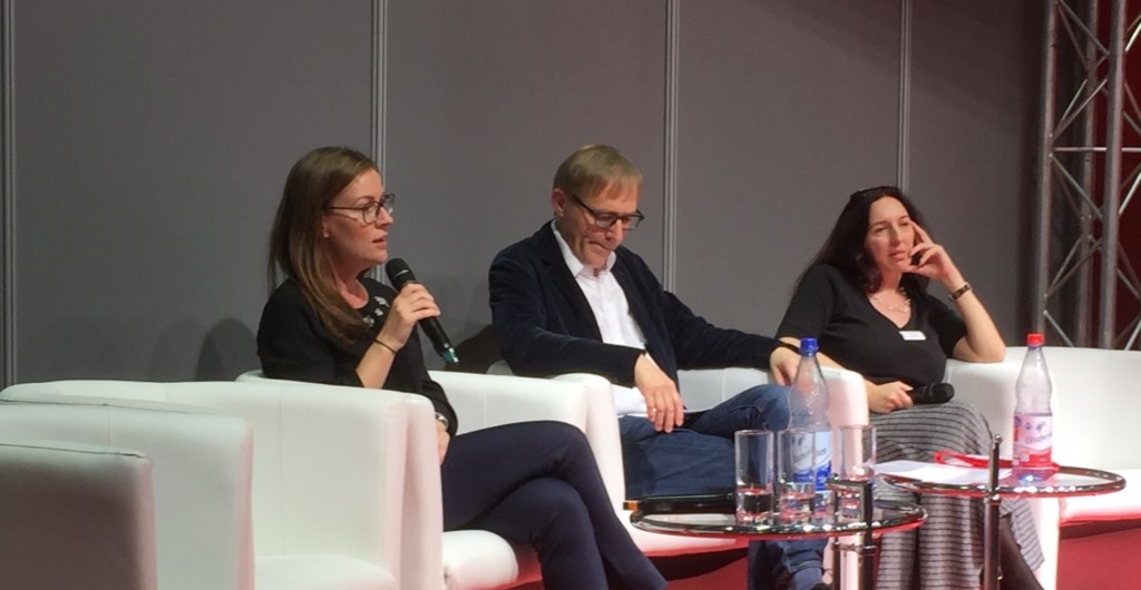 Ein weiteres Projekt, das derzeit in aller Munde ist, stellt Natalja Schmidt vor: die Buch-Serie „Doors“ von Markus Heitz. Für diese wurde zunächst ein Pilot von 80 Seiten produziert, der großflächig und kostenlos in Deutschland auf den Markt gebracht wurde. Neben der digitalen Version gab es auch 10.000 Print-Exemplare, die dafür sorgen sollten, dass der Handel ganz massiv mit ins Boot geholt wird. Am Ende der Pilotfolge findet sich der Lesende vor drei Türen wieder. Was sich hinter diesen Türen verbirgt, erfährt er in drei voneinander unabhängigen Bänden, die es ihm ermöglichen selbst zu wählen, wie die Geschichte verlaufen soll: Möchte ich alle Bücher lesen? Mit welchem Buch beginne ich? Das sind Entscheidungen, welche die Serie offenlässt. Und bereits eine zweite Staffel mit noch mehr Interaktions-Potential ist in Planung, so Schmidt. Wichtig ist hierbei, dass sich Print und Digital sinnvoll ergänzen und im Idealfall gegenseitig befeuern. So kann der Lesende zum Beispiel auf Spotify die Playlist anhören, die den Autor beim Schreiben inspiriert hat.