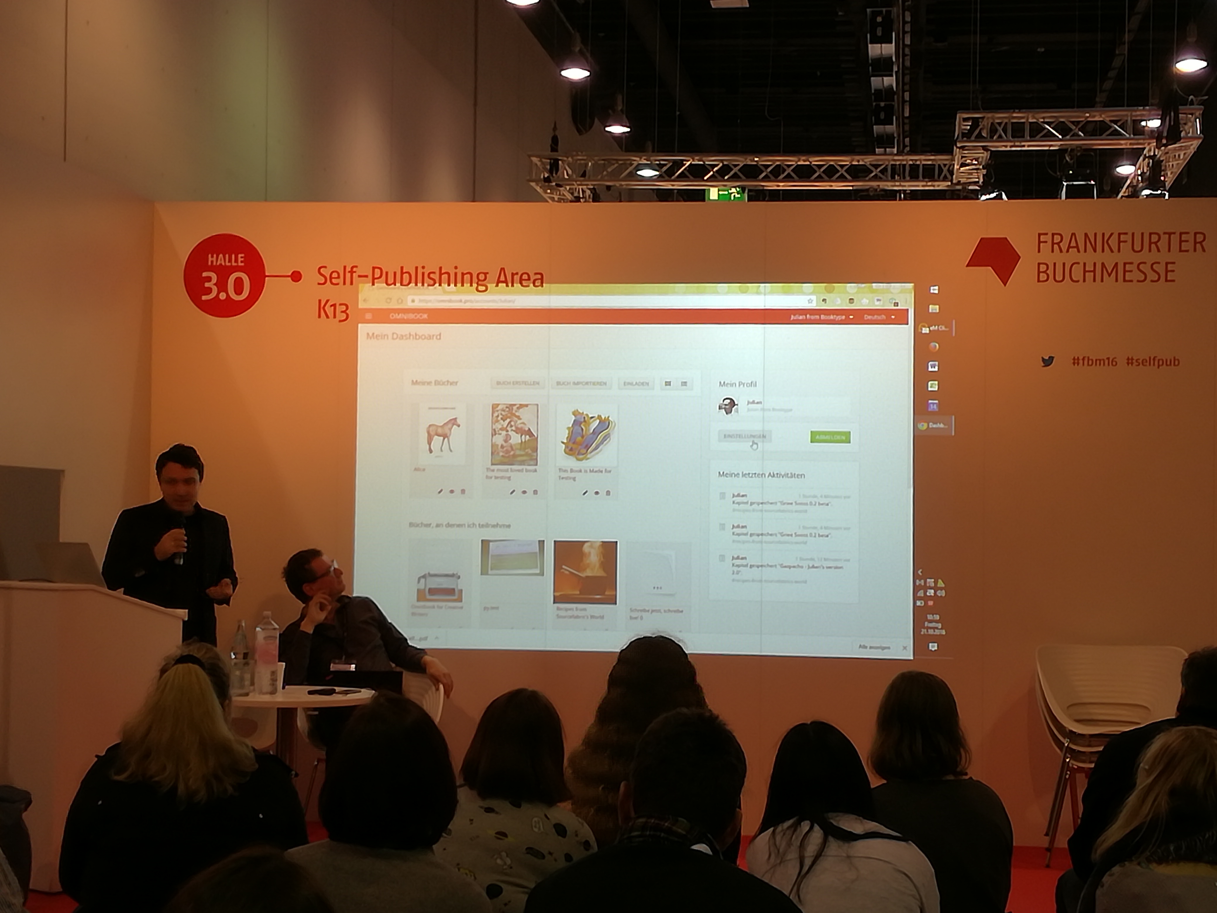 In der Selfpublishing Area in Halle 3.0 hat Micz Flor von Booktype am Freitagvormittag die neue Autorenplattform Omnibook vorgestellt und Fragen (angehender) interessierter Autoren und Autorinnen beantwortet.